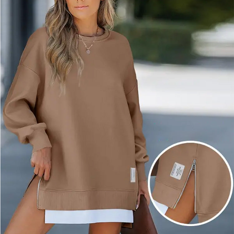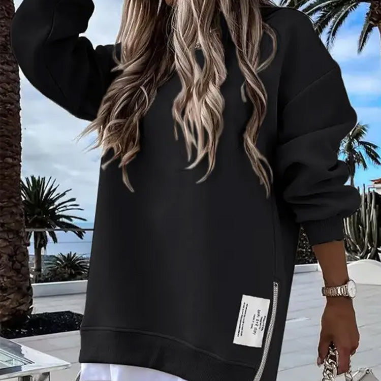 Långärmad tröja med dragkedja och slits, avslappnad sweatshirt